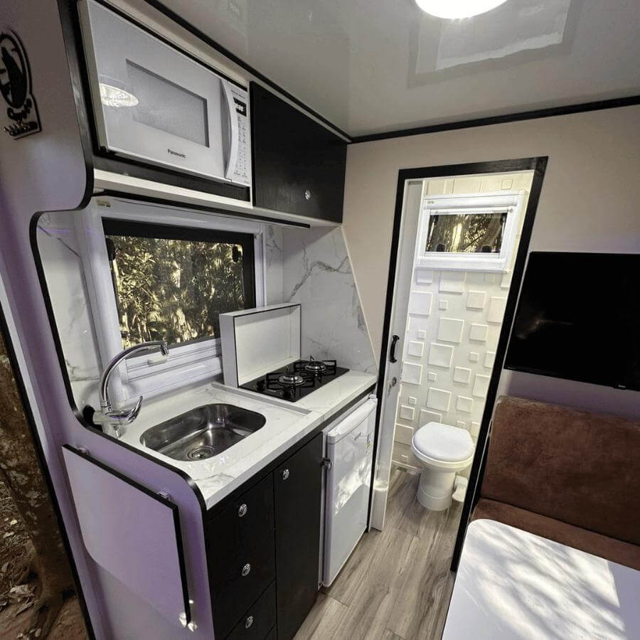 • Nível do trailer: após estacionar, é essencial nivelar corretamente o trailer para garantir o funcionamento adequado dos equipamentos internos (banheiro, fogão, geladeira etc.).