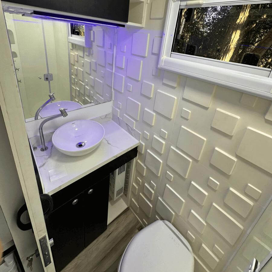 • Banheiro funcional: inclui vaso sanitário fixo, pia e chuveiro.
